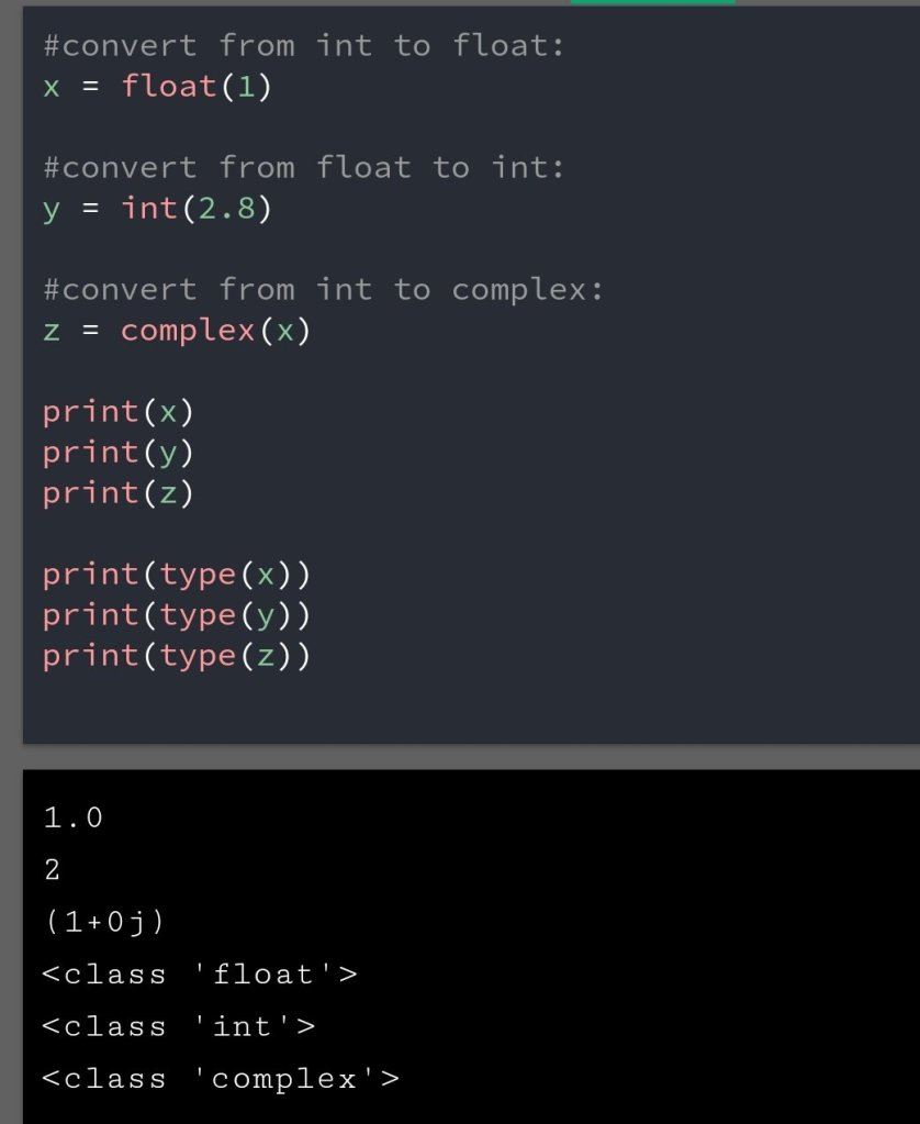 Conclusion:- The numbers can convert from one number to another number using int(), float(), complex(). The complex number can’t convert to int or float.