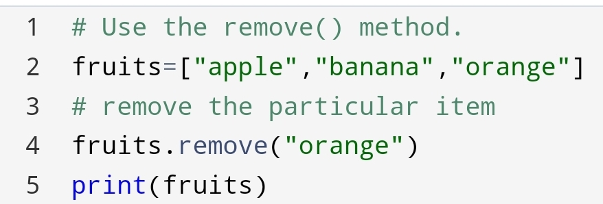 Here, you will observe that “orange” has removed from the list of fruits.