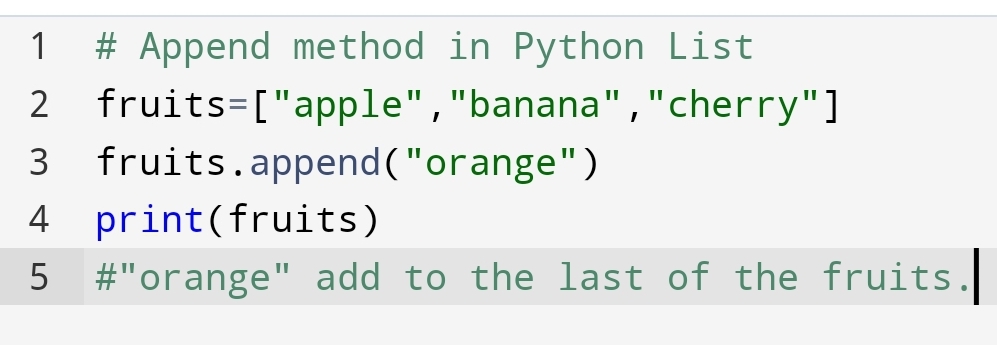 Suppose You have to add the item to the last of your list. Not middle and start but only in the last. You will use the Append method.