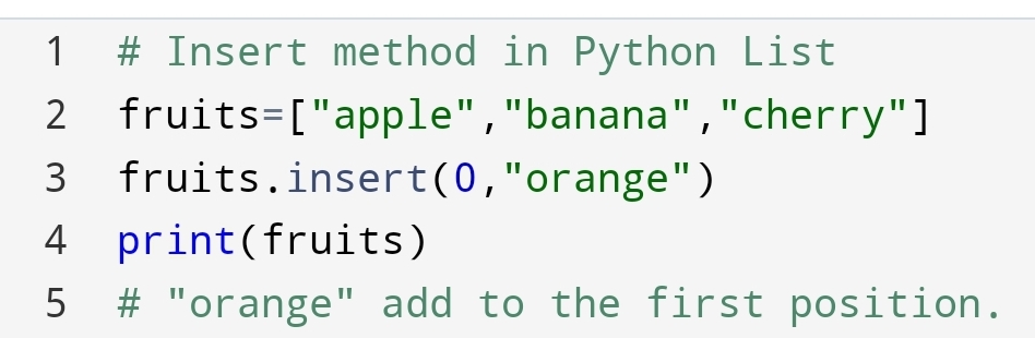 Suddenly, you think that “I need orange in the first place, I have to eat an orange first “. You will use the Insert method.