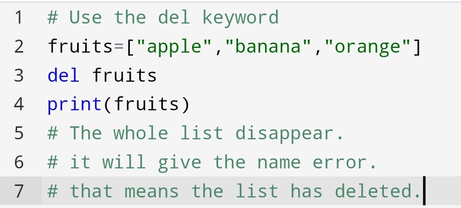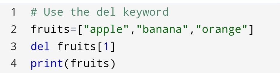 You had seen how the del keyword has deleted the “banana” from the list.