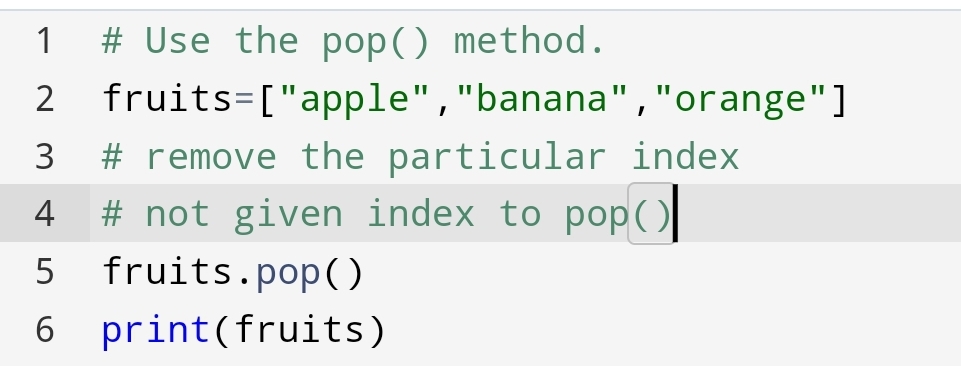 Suppose you want to remove the item based on the position of the fruits. You can use the pop with index.