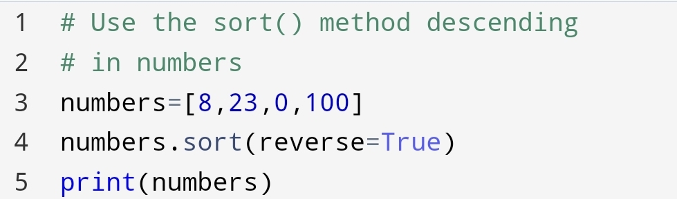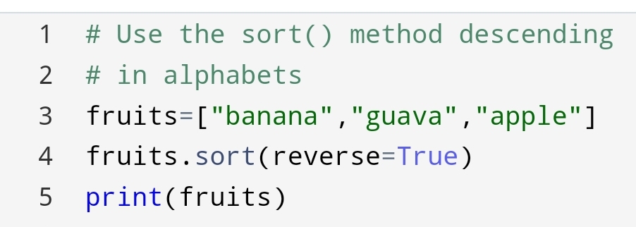 In this, we use the keyword argument reverse=True. This keyword reverses the order of alphabets and numbers.