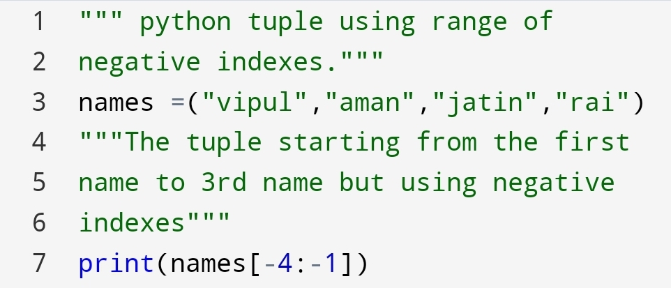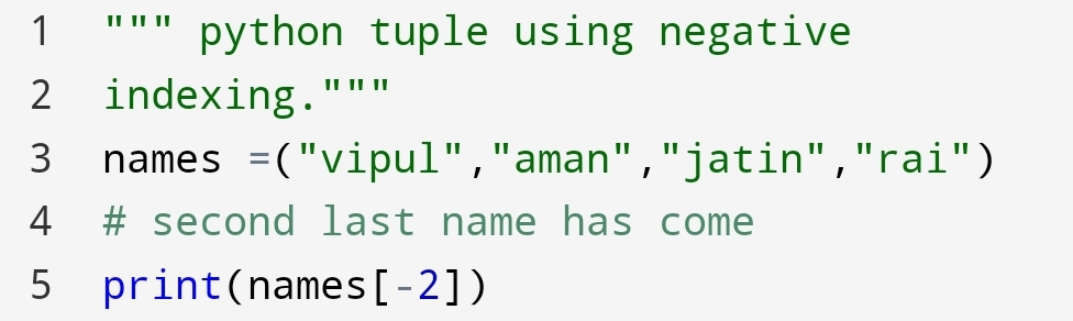 Suppose there are thousands of names in the tuple. You want a name from the last of the tuple.