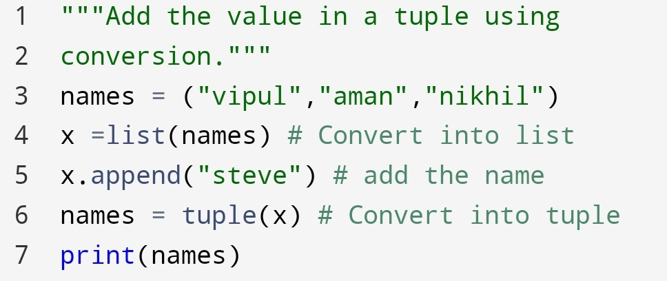 The second approach to add a tuple to the tuple. let’s see how can you do?