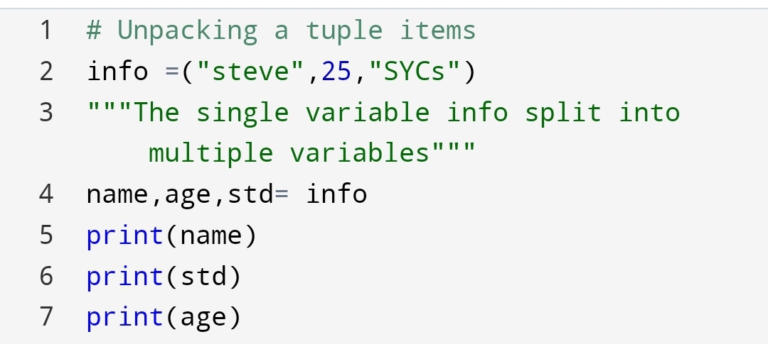In this section, you are going to see how can you access, update and unpack the secure data with help of a tuple item.