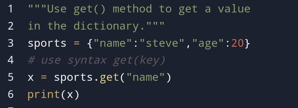 Suppose, you want to get the value of a key from a dictionary. To gain the value using the key you will use get() method