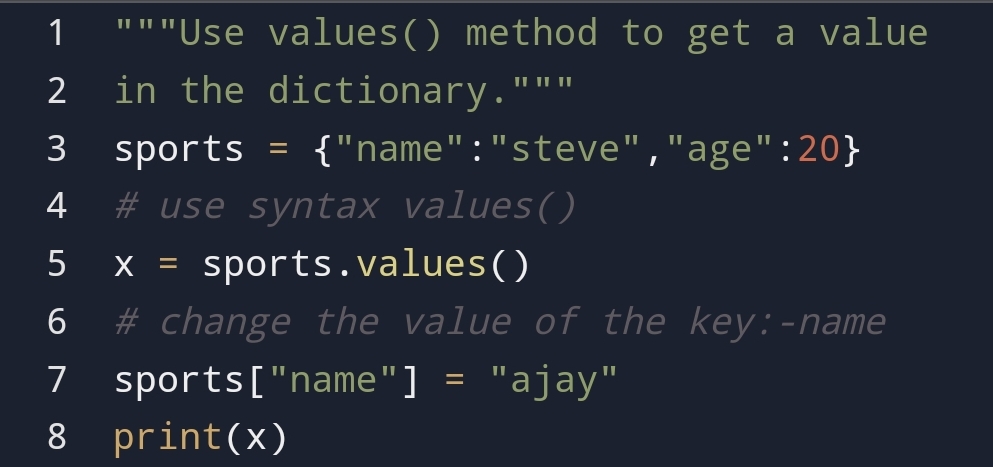 Suppose, you have changed the value in the dictionary. What the impact of this on the values() method.