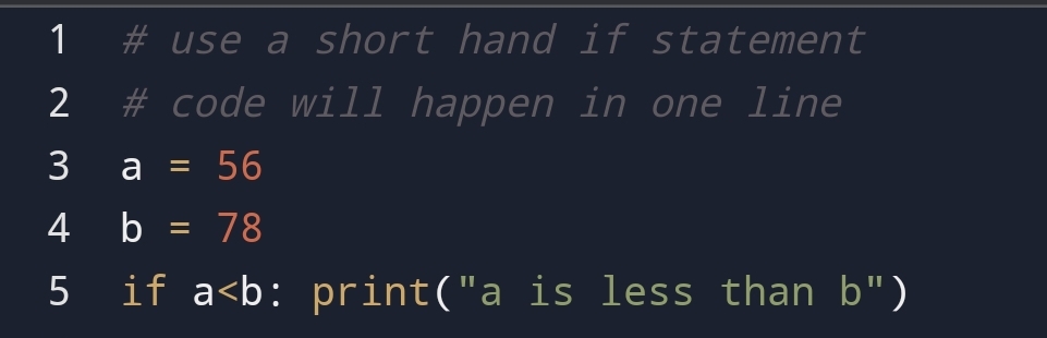 Here, you can see that we have done code only in one line. In short, hand if statement we only need one line to do the code.