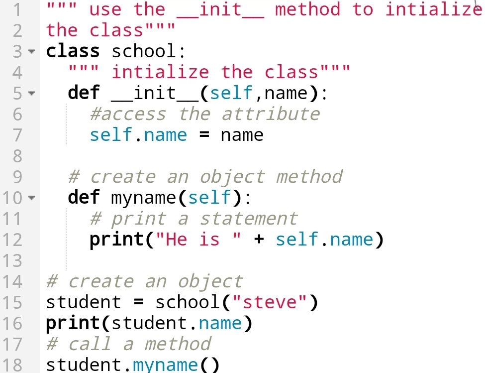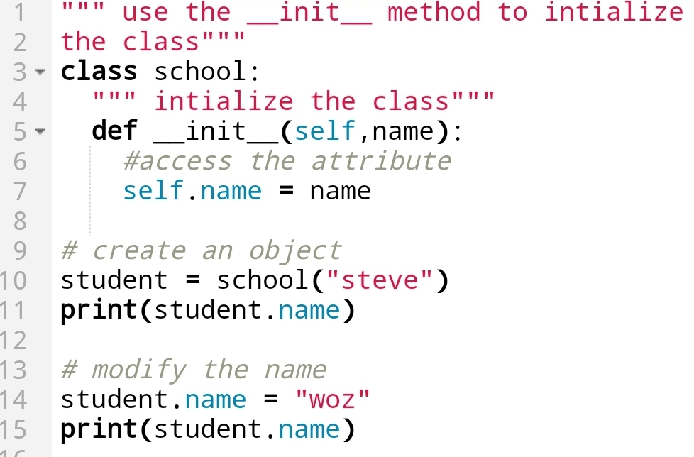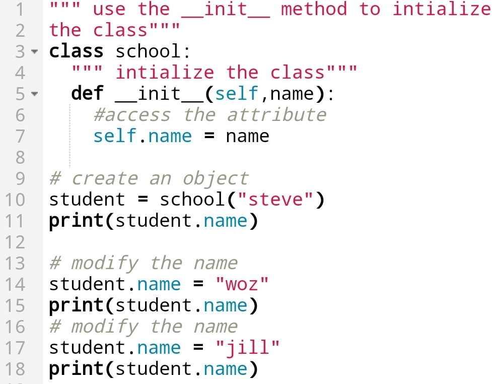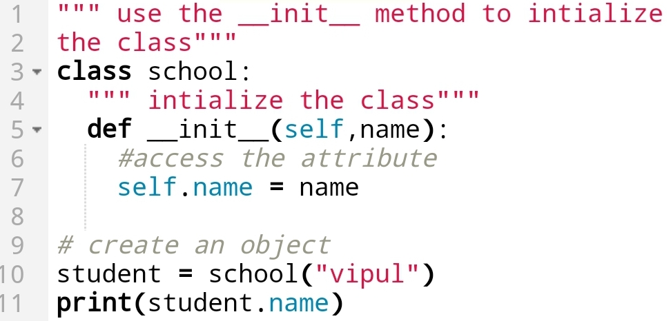 Here, you can see that I have Initialized the class with __init__method.
